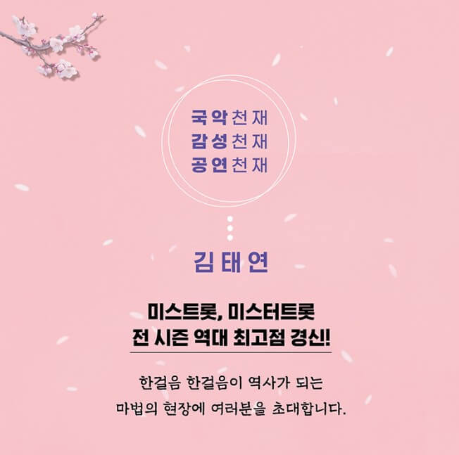 미스터 트롯 2의 아기호랑이 가수 김태연의 콘서트가 4월 22일 토요일 열립니다. 그동안 미스터 트롯 보시면서 김태연님의 팬이셨던 분들 아직 자리가 남아있으니 서두르시길 바랍니다. 아주 아주 소량입니다.