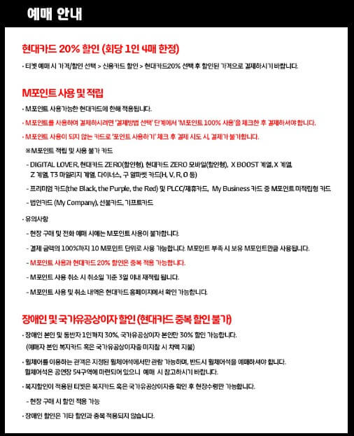 현대카드 회원 선예매 : 4월 27일 목요일 낮 12시 ~ 23시 59분