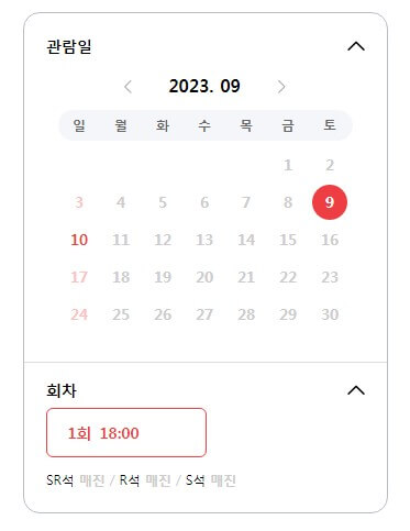 SR석 | R석 | S석 | A석 |